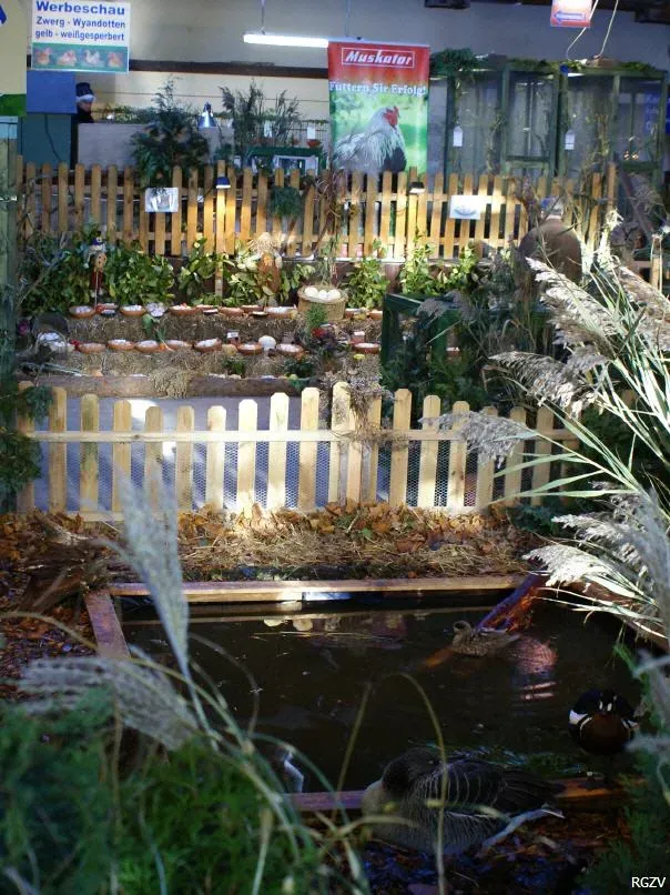 Wir haben das Ganze aber positiv gesehen und die eine oder andere Lücke mit sehr viel Liebe weg dekoriert. So konnten wir im vorderen Bereich der Halle eine schöne große Voliere aufbauen, in der wir verschiedene Geflügelrassen in einer natürlichen Umgebung zeigen konnten. Auch konnten wir unserer sehr schönen und großen Eierschau mehr Platz einräumen. Einige Verkaufsstände für Zubehör und Futter aber auch für Dekoration und Kosmetik rundeten das Ganze ab.